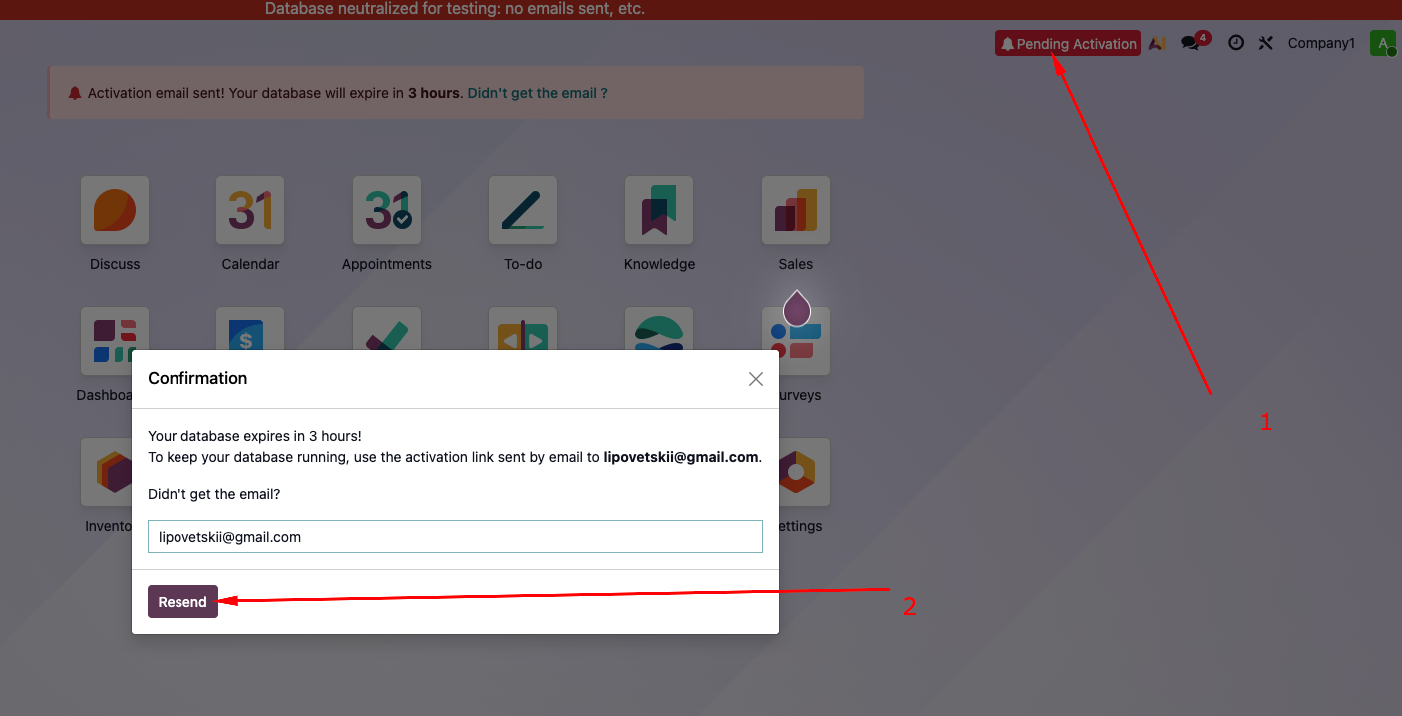 To extend the availability of the test database to 14 days, click the Confirm / Pending button.