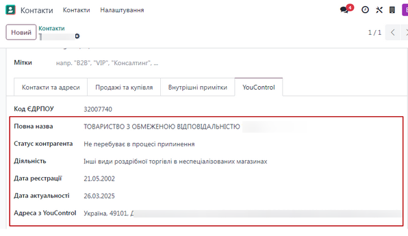 У сучасних умовах українського бізнесу перевірка контрагентів — не просто формальність, а ключовий етап захисту компанії від ризиків. Саме тому ми розробили коннектор YouControl для Odoo, який дозволяє отримувати офіційні дані про компанію за кодом ЄДРПОУ безпосередньо в Odoo, а також здійснювати Експрес-аналіз і перевірку на зв’язки зі країною-агресором. Модуль актуальний для українських компаній, працює як на Odoo Community, так і Enterprise, та підтримує розгортання на On-Premise і Odoo.sh. Якщо ви прагнете підвищити прозорість і безпеку своїх бізнес-процесів — цей інструмент стане незамінною частиною вашої ERP-системи.