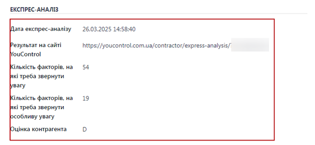 ​4) Якщо включене додаткове системне налаштування Advanced request YouScore, заповняться наступні поля (за наявності даних) :